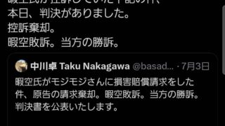 嫌儲 暇空茜、のりこえねっとに敗訴し最高裁に上告するも敢え無く不受理「対戦ありがとうございました🥸」